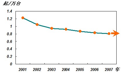 2001年至2007年萬臺事故起數(shù)趨勢圖