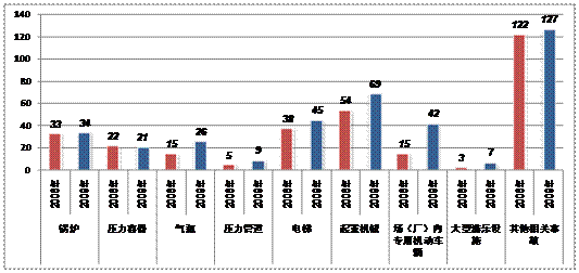 事故起數增加主要原因是新修改的《特種設備安全監察條例》將沒有人員傷亡的鍋爐、壓力容器、壓力管道爆炸、有毒介質泄露導致人員轉移、客運索道、大型游樂設施高空滯留人員、電梯轎廂滯留人員、起重機械整體傾覆等情況定義為事故,另外將場(廠)內專用機動車輛納入條例調整范圍,擴大了事故范圍和統計口徑,導致事故起數較大幅度上升。若以事故死亡人數這一相同口徑比較,事故狀況仍繼續保持平穩態勢。