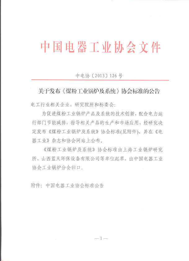 關于發布《煤粉工業鍋爐及系統》協會標準的公告