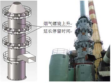 (2)外部導管專利除霧器的應用,實現(xiàn)上下級漿液的獨立循環(huán),提高了氧化劑的利用率。煙氣螺旋上升,延長其停留時間。