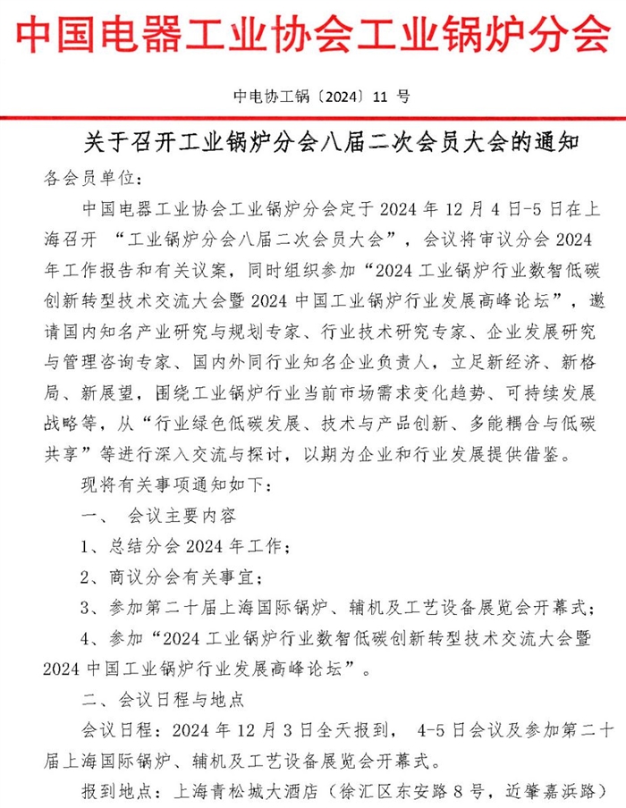 關(guān)于召開工業(yè)鍋爐分會(huì)八屆二次會(huì)員大會(huì)的通知
